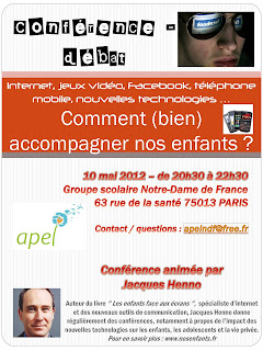 Je serai demain soir, jeudi 31 mai 2012, à Palaiseau (91), à l’invitation d’une association familiale, pour parler, devant les parents, des «Intérêts et dangers des réseaux sociaux et des nouvelles techniques de communication» :